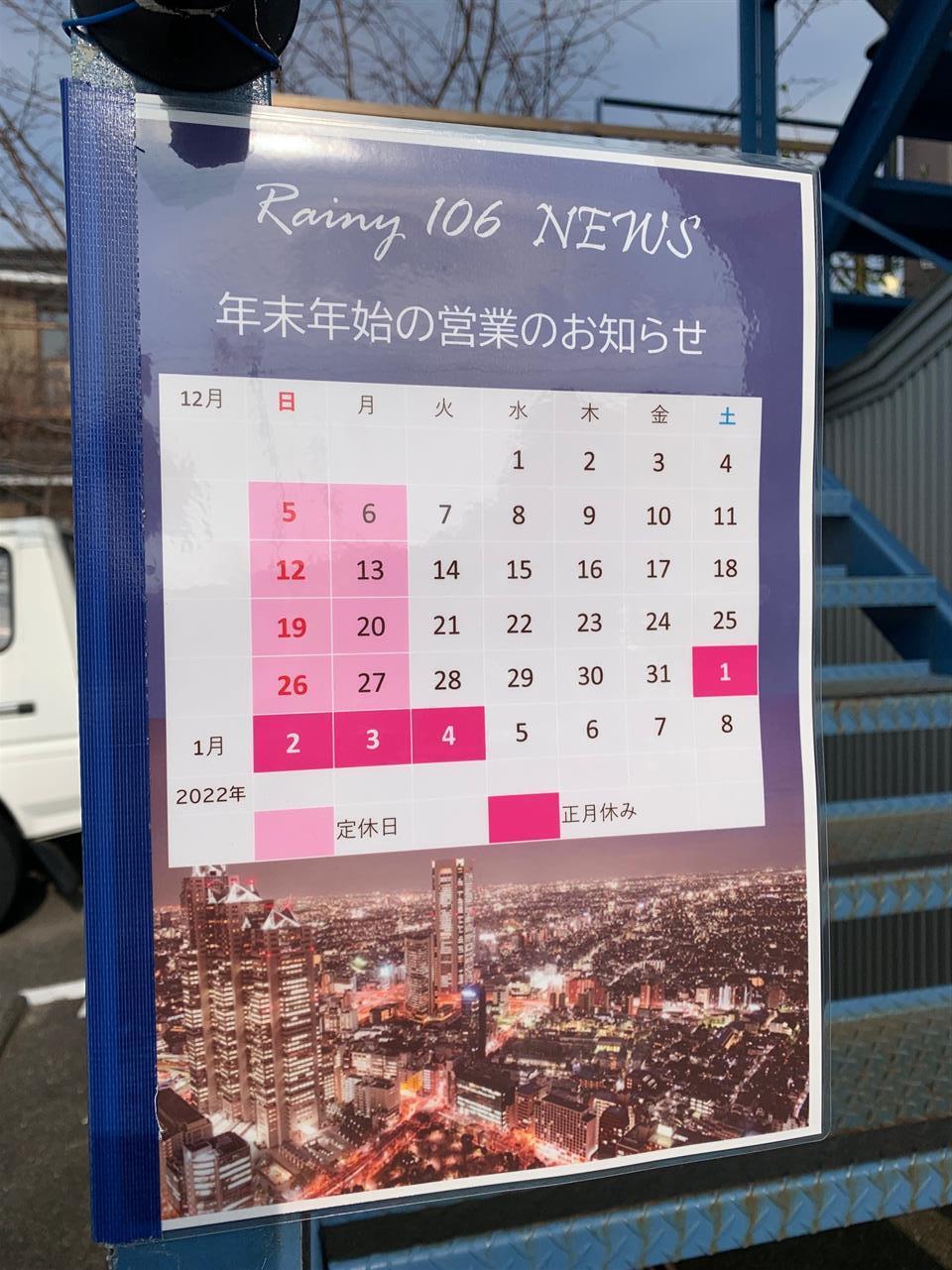 年末年始の営業のお知らせ